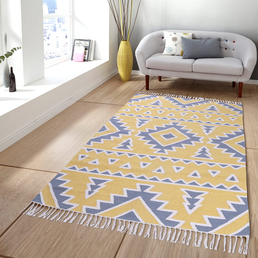 PEQURA Yellow/Gray and Natural Color Cotton Floor Covering Akbar Rug/Runner/Door Mat