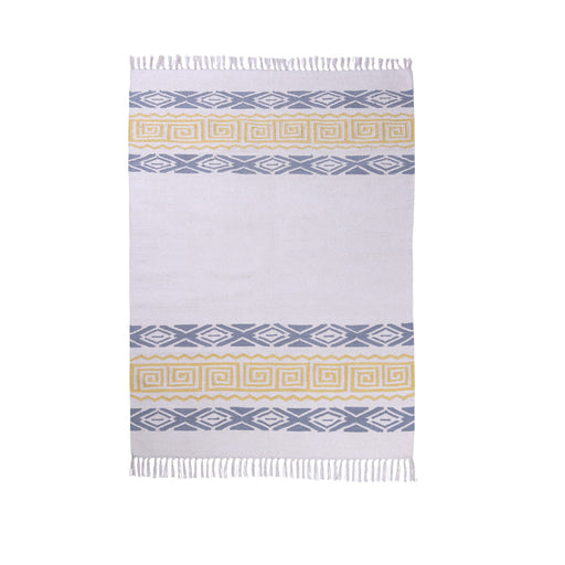 Sky Blue, White, and Yellow, Cotton PEQURA Rug