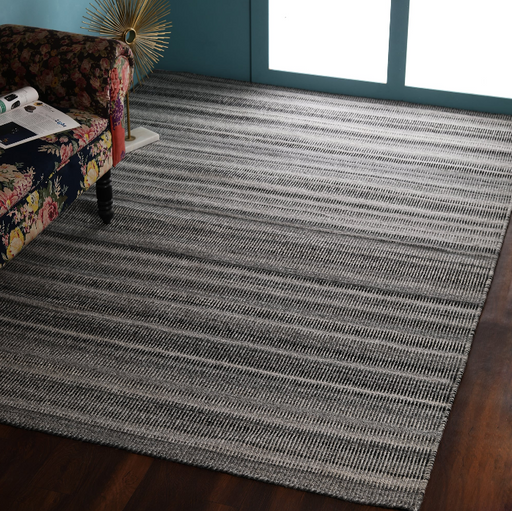 Black-Gray Vertical Stripe Handwoven Wool Rug