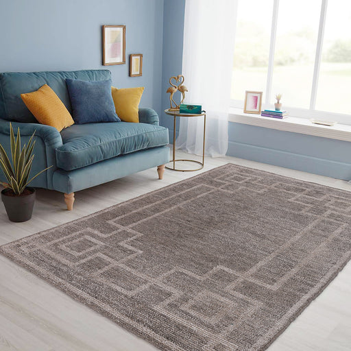 • Pequra Elegance Hand Knotted Geometric Jute Rug - Grey