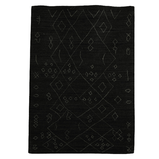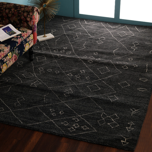 PEQURA Diamond-Linked Tribal Wool Carpet – Handwoven Charcoal & Black Geometric Rug