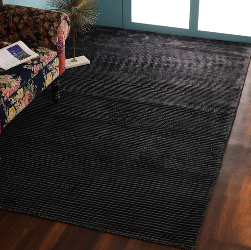 PEQURA Wool Textured Black Rug – Handwoven Minimalist Carpet with Horizontal Grain Finish
