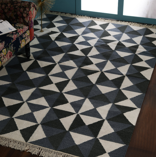 Original price Rs.8,999.00 - Original price Rs.8,999.00Original priceRs.8,999.00Rs.8,999.00 - Rs.8,999.00Current price Rs.8,999.00| /Low stockIntroduce graphic sophistication to your home with the Diamond-Triangle Grid Wool Rug, where tribal artistry meets modern geometry. The pattern fea...