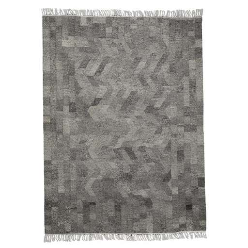 Wool Rug – Maze-Like Geometric Gray Pattern