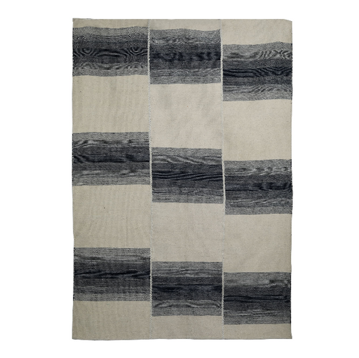 PEQURA Wool Weathered Abstract Rug – Handwoven Black, Gray & White Distressed Carpet for Modern Interiors
