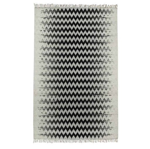 PEQURA Zigzag & Triangle Border Wool Carpet – Tribal Minimalist Rug in Black & Beige